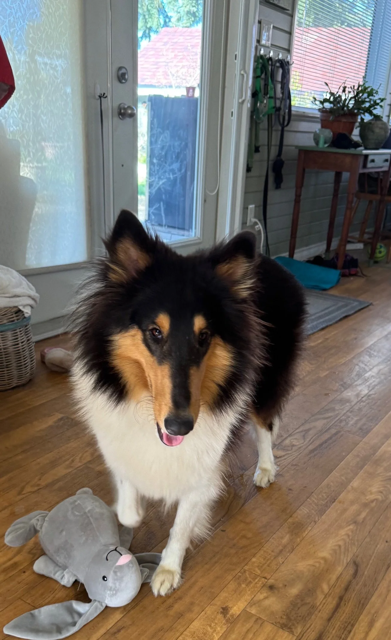 Cici is one of 4 collies WCCR rescued from a hoarding situation in Nevada. She is currently in a ‘foster to adopt’ home, with a pending adoption. She has been loving her time with her new best pals (2 male collies), and her new people. Extremely lively and able to run like the wind, her large fenced back yard with her playmates is the perfect setting for this collie. She has slowly been adapting to also sharing this new home with 2 cats and a bunny. As with all of these collies, she remains very curious yet cautious when presented with unfamiliar sights and sounds. Once understood that these new experiences are not threats, she quickly adapts.