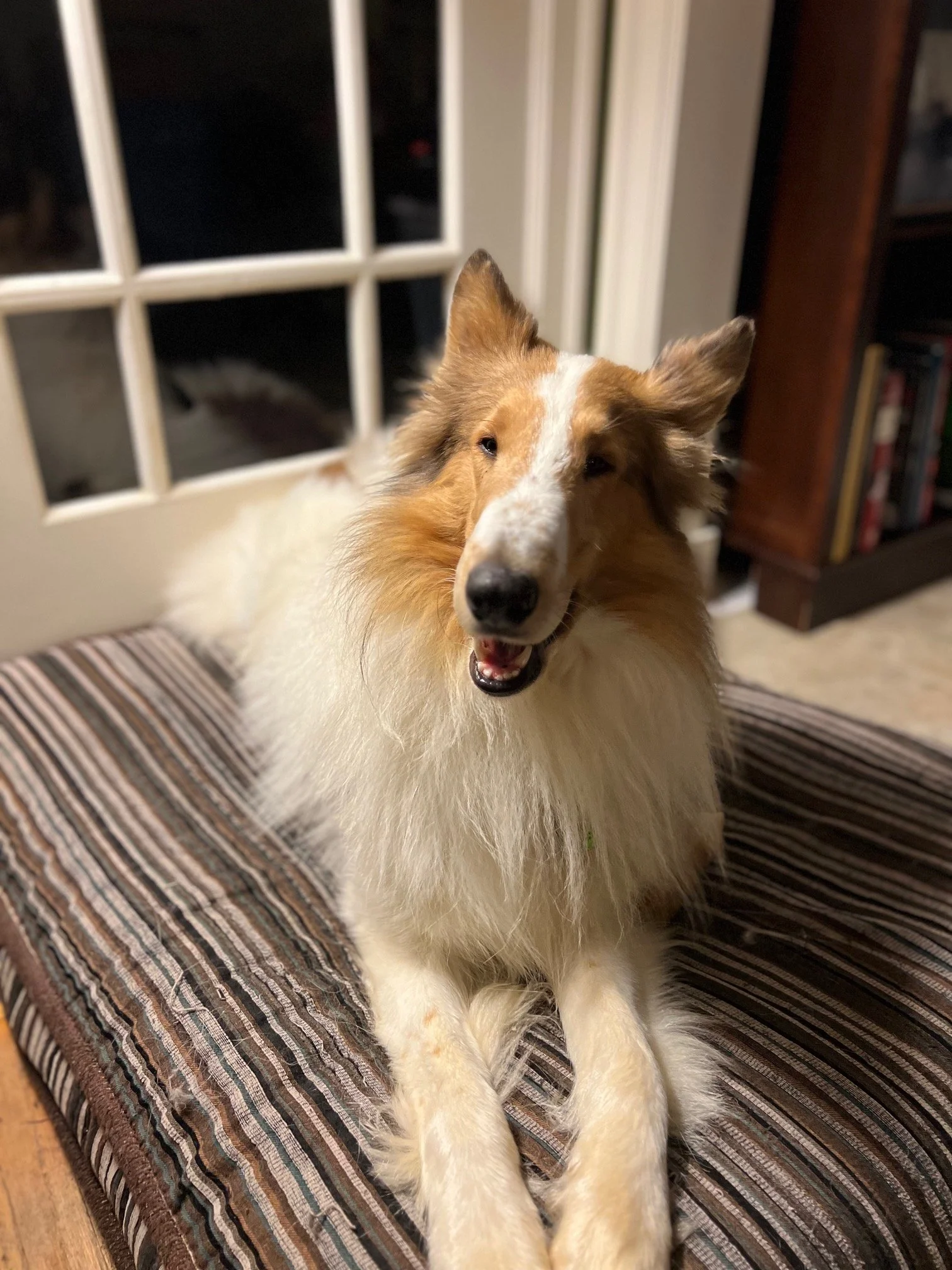 Ilo is one of 4 collies WCCR has rescued from a hoarding situation in Nevada. He is a super sweet, affectionate collie who has made amazing progress over less than 2 weeks. He is in very good hands with his foster folks, who have gradually introduced him to new sights, sounds and experiences. He has been respectful of the 2 cats in this home (with proper guidance and gradual introductions). A gentle soul, he loves to learn and spend time with his people.